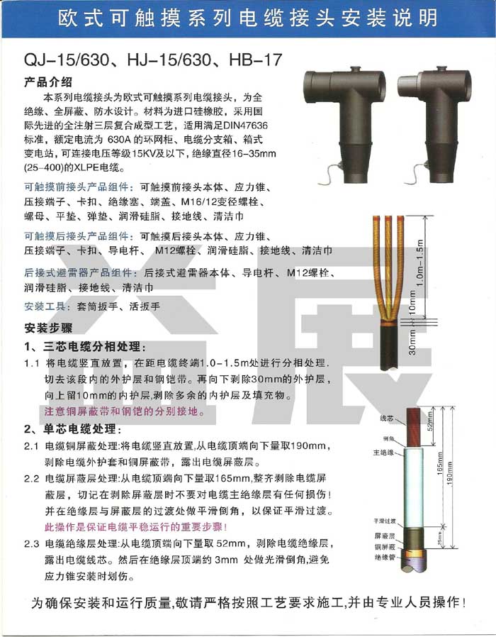 可觸摸歐式避雷器產(chǎn)品特點(diǎn):先進(jìn)的后注射工藝,外層有起屏蔽作用的半導(dǎo)電層,可觸摸,確保人身安全。獨(dú)特的盈利在結(jié)構(gòu),有效地疏散電場(chǎng)應(yīng)力,解決電纜屏蔽層切斷處電場(chǎng)應(yīng)力問題。可擴(kuò)展性,拆裝靈活。可完成電纜的T型連接,全密封,全絕緣,全防護(hù),免維護(hù),抗淹沒,抗污穢。