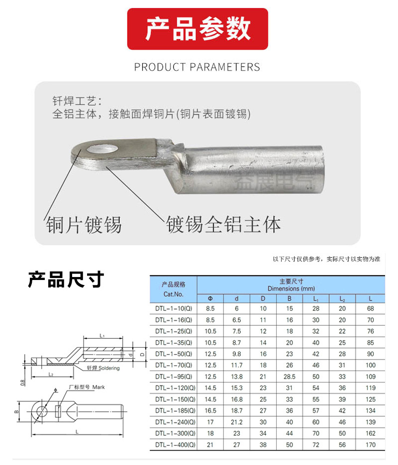 DTL釬焊銅鋁端子 Home您現在的位置:網站首頁 >> 產品中心 >> 銅鋁過渡端子