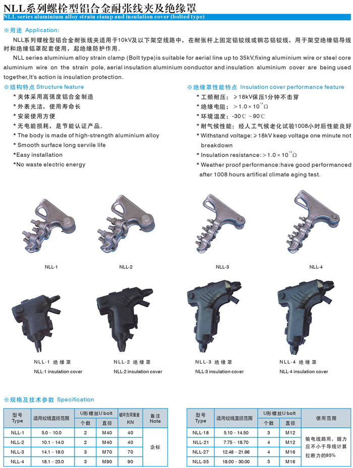 螺栓型鋁合金耐張線(xiàn)夾及絕緣罩(NLL)