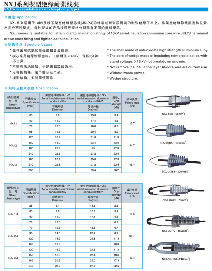 楔型絕緣耐張線夾(NXJ、NXJ-Q) Home您現在的位置:網站首頁 >> 產品中心 >> 金具線夾系列
